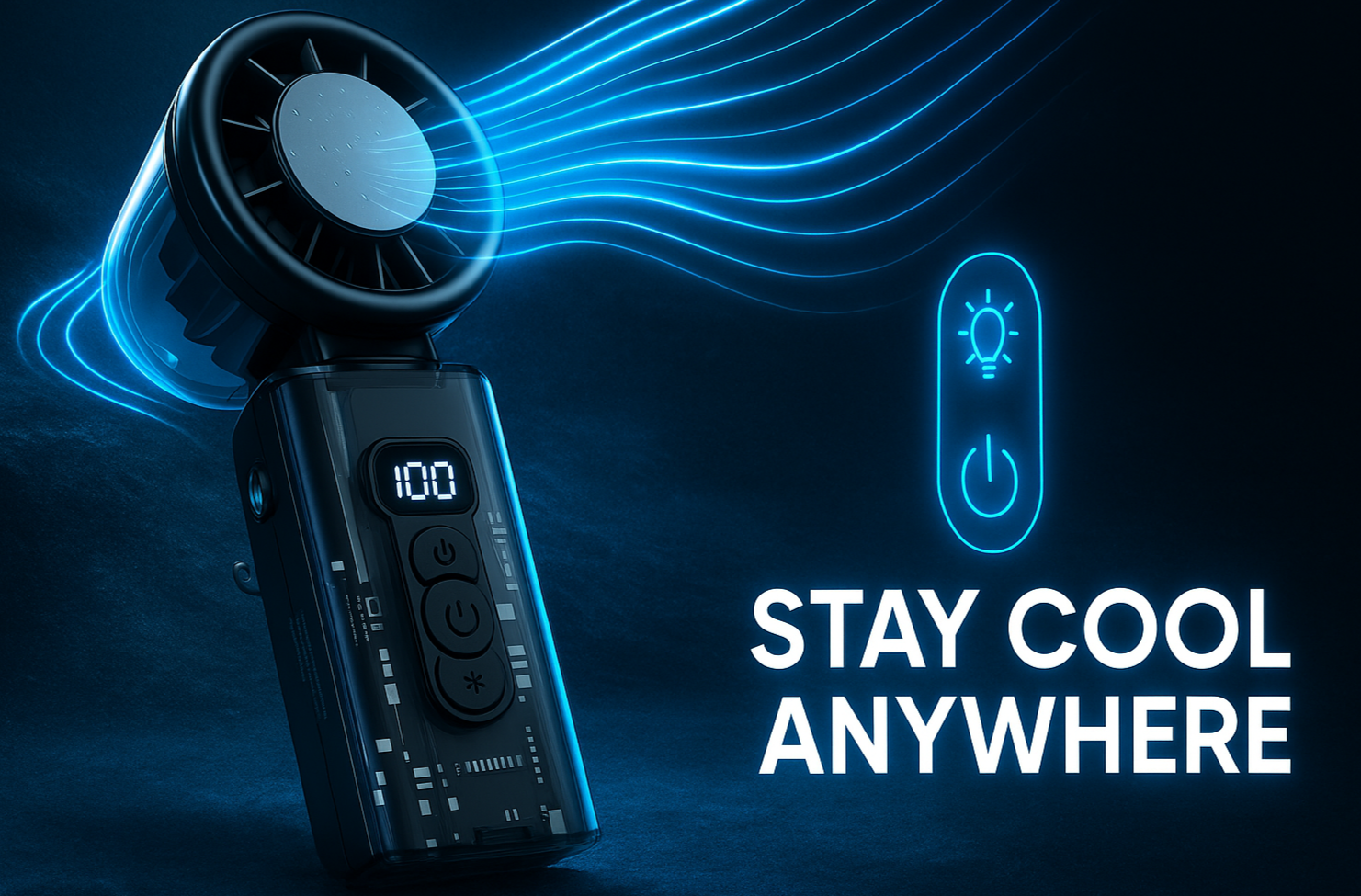 Stay cool anytime, anywhere with a sleek, compact fan that fits in your bag and provides instant relief on the go.
